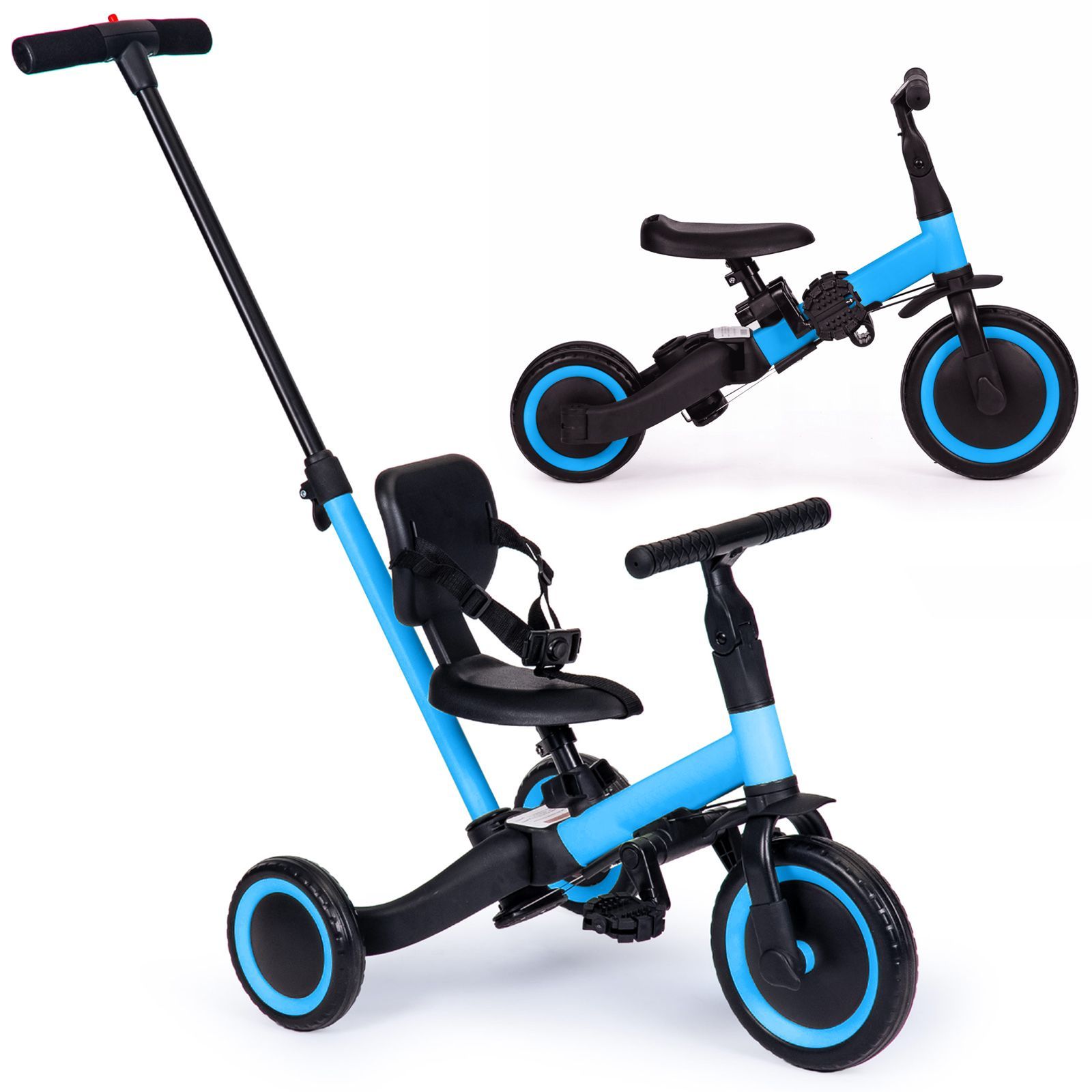 Детский беговел-велосипед 4в1 с родительской ручкой, синий - TR007-BLUE