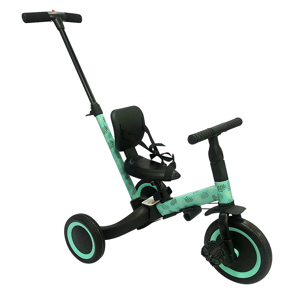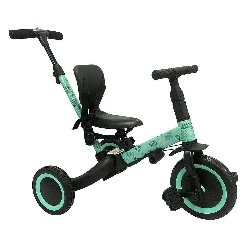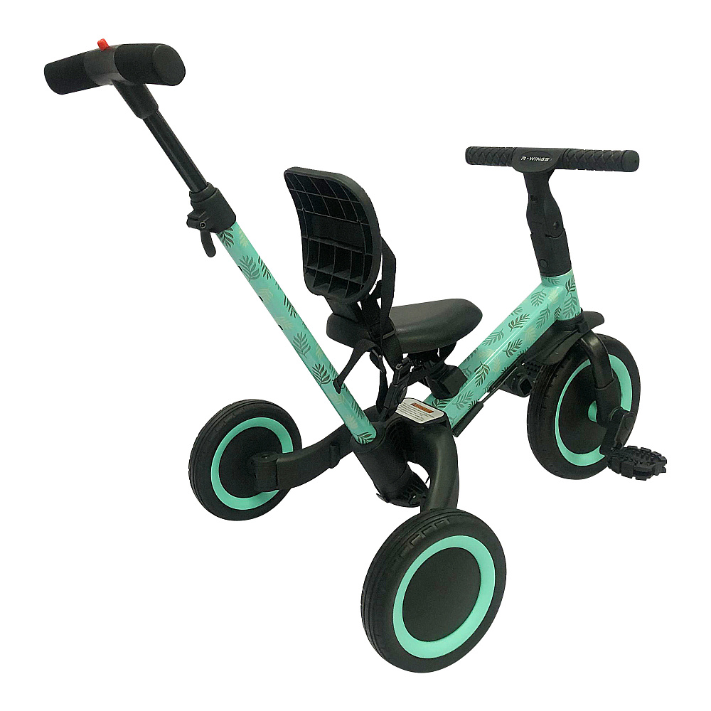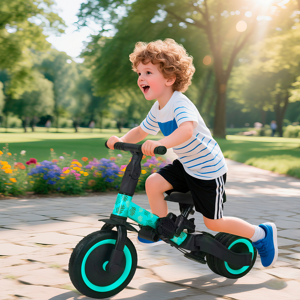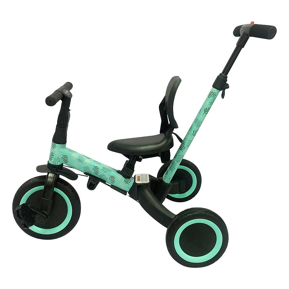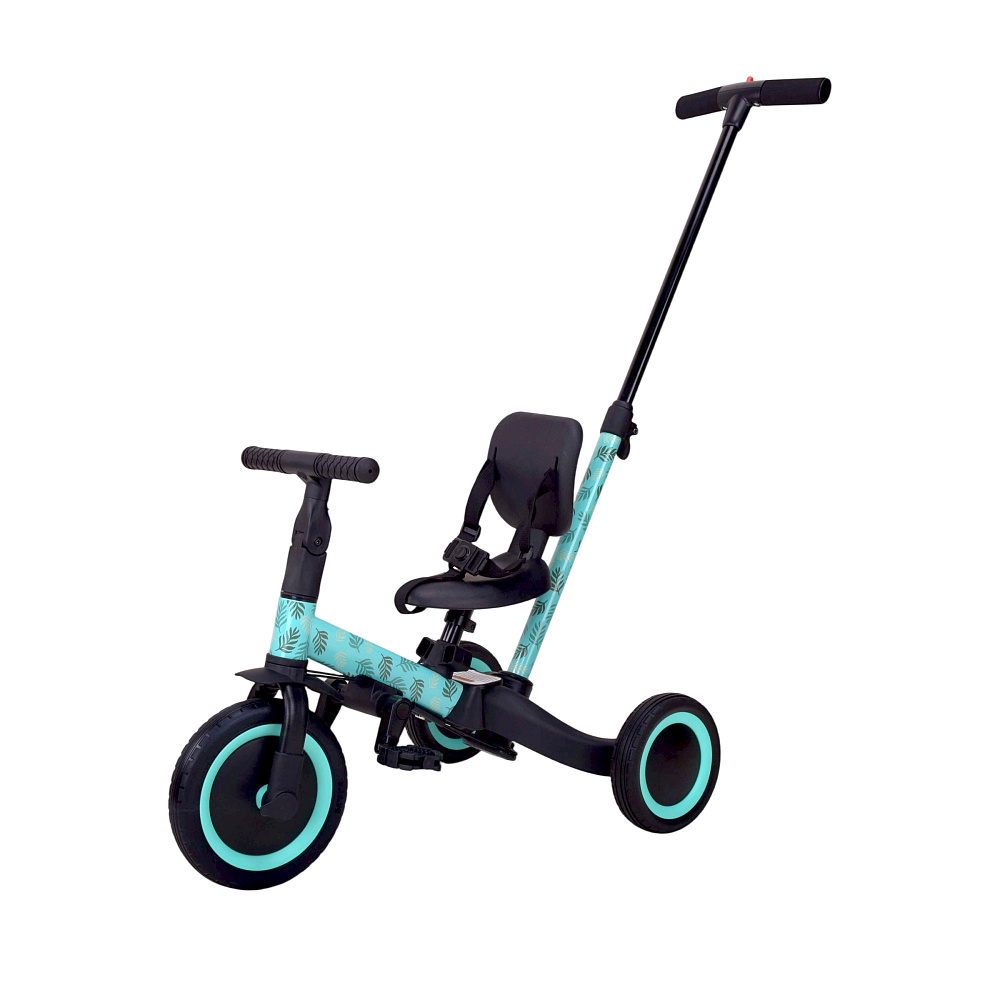 Детский беговел-велосипед 4в1 с родительской ручкой, розовый с рисунком - TR007-CYAN-PAINT - это удобный, универсальный и надежный беговел для детей от 1 до 5 лет, с возможностью становиться велосипедом!