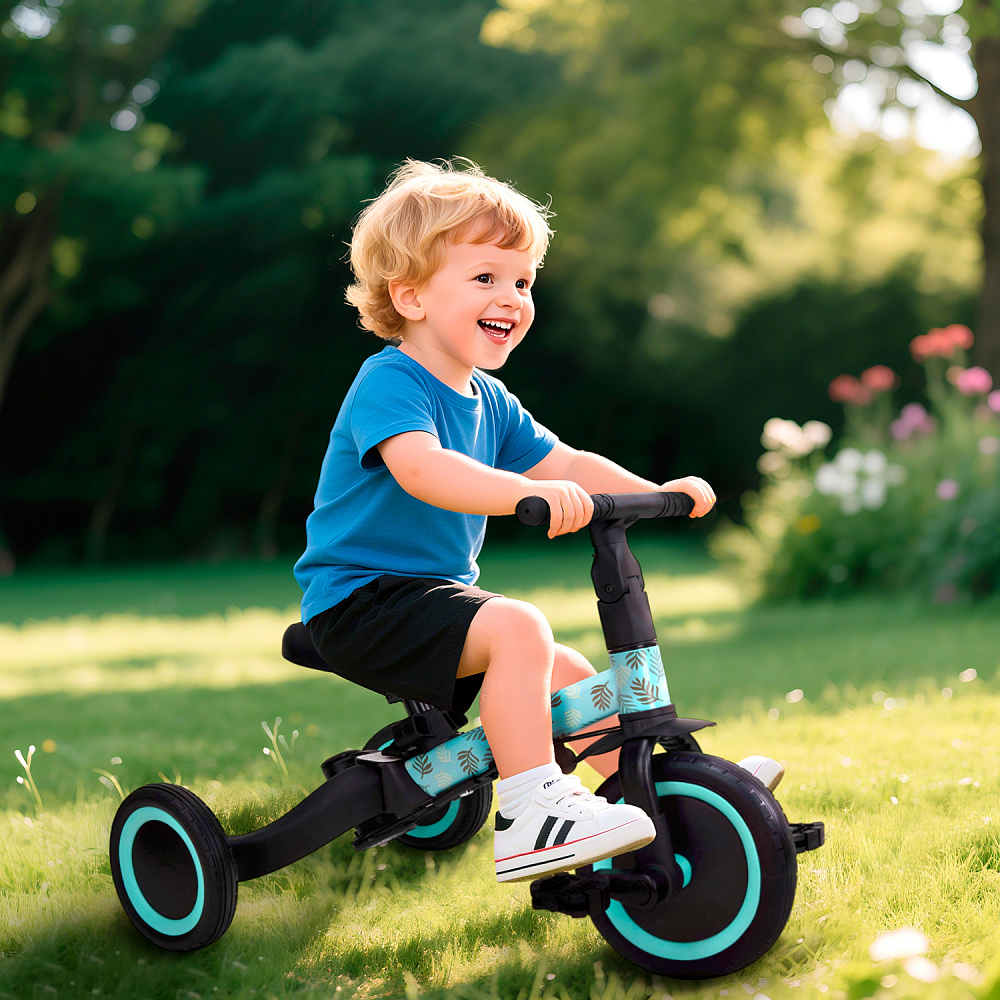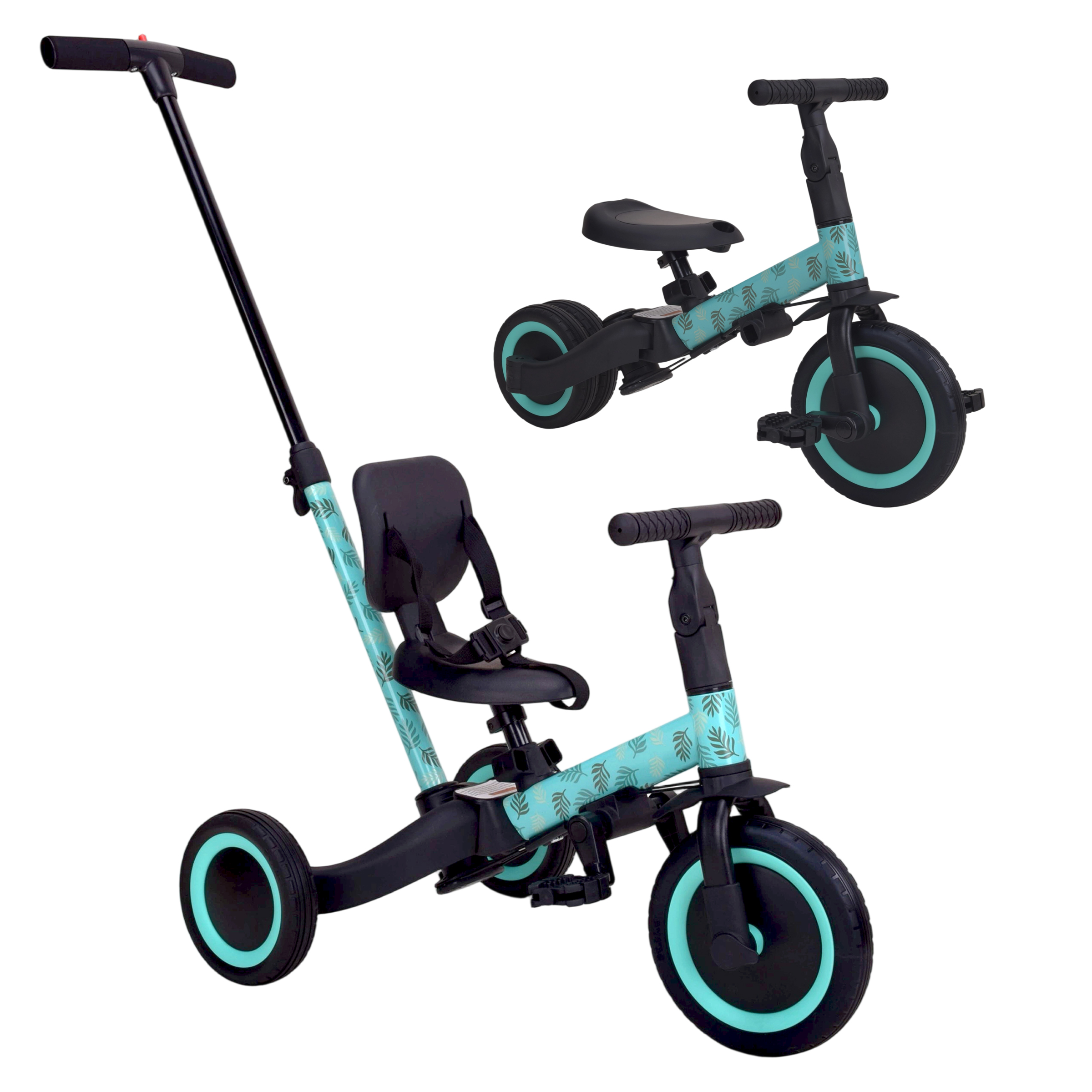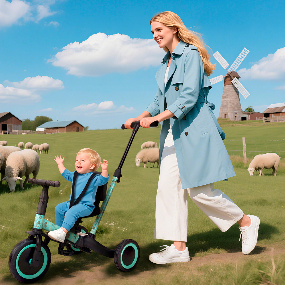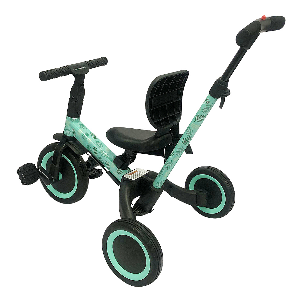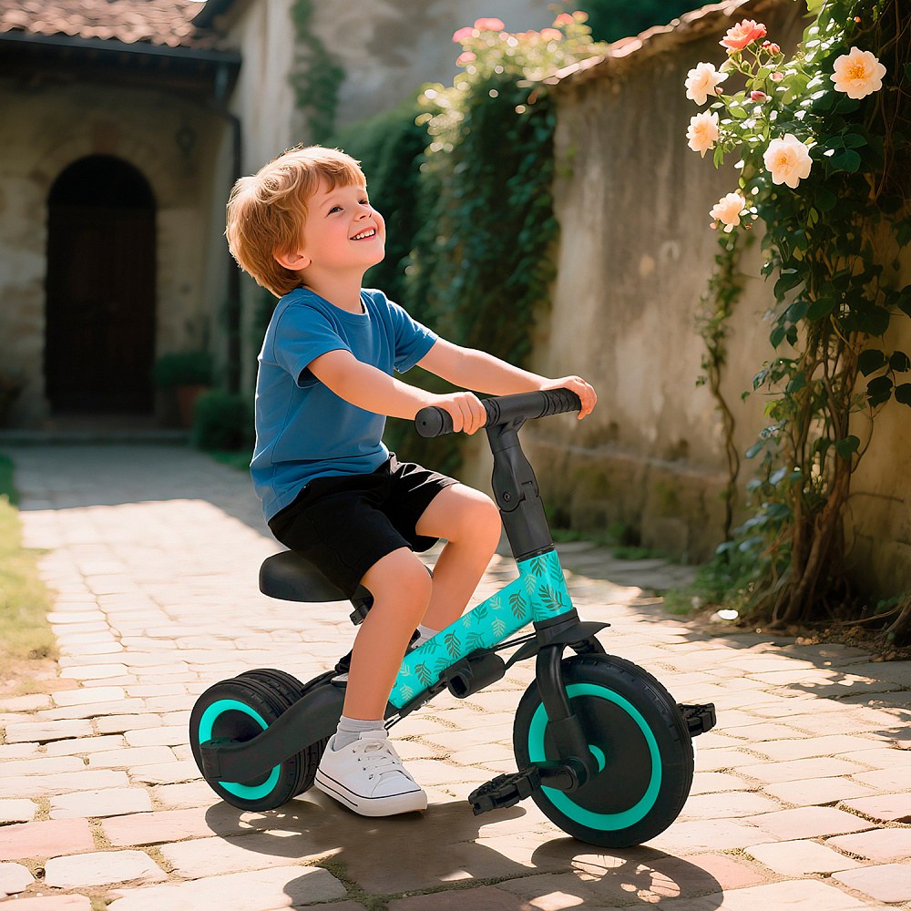 Детский беговел-велосипед 4в1 с родительской ручкой, розовый с рисунком - TR007-CYAN-PAINT - это удобный, универсальный и надежный беговел для детей от 1 до 5 лет, с возможностью становиться велосипедом!