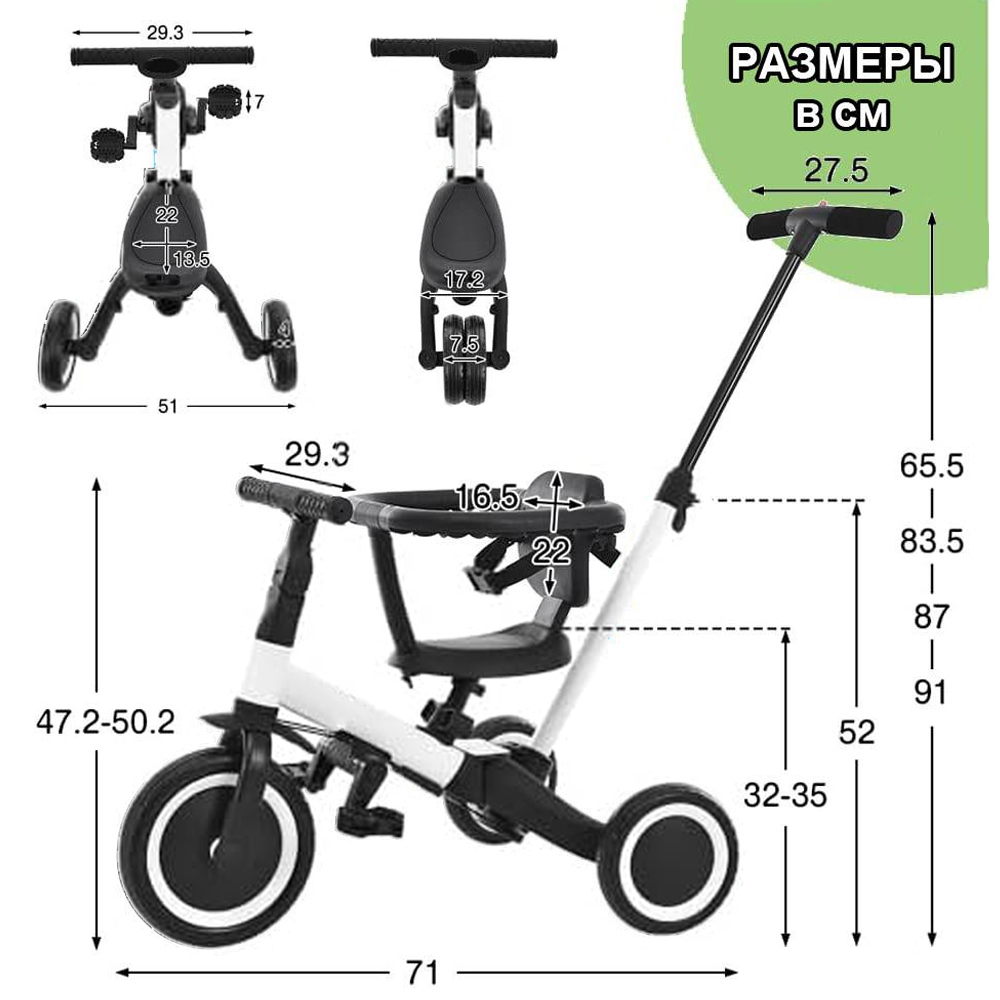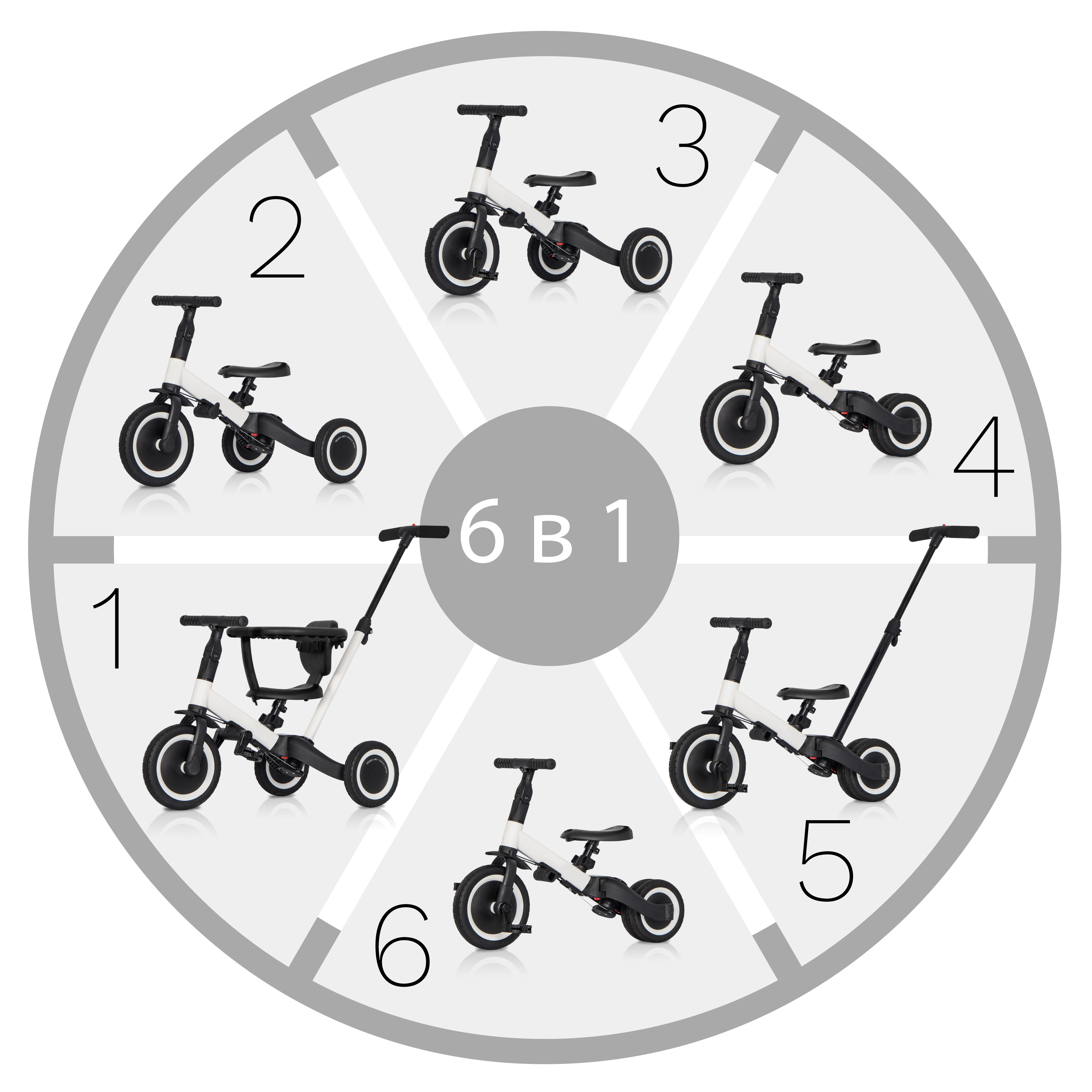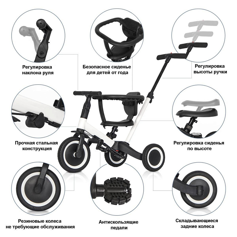 Детский беговел-велосипед 6в1 с родительской ручкой, белый - TR008-WHITE - это обновленная модель беговела TR007 с боковой поддержкой сиденья. TR008 - это удобный, универсальный и надежный беговел для детей от 1 до 5 лет, с возможностью становиться велосипедом!