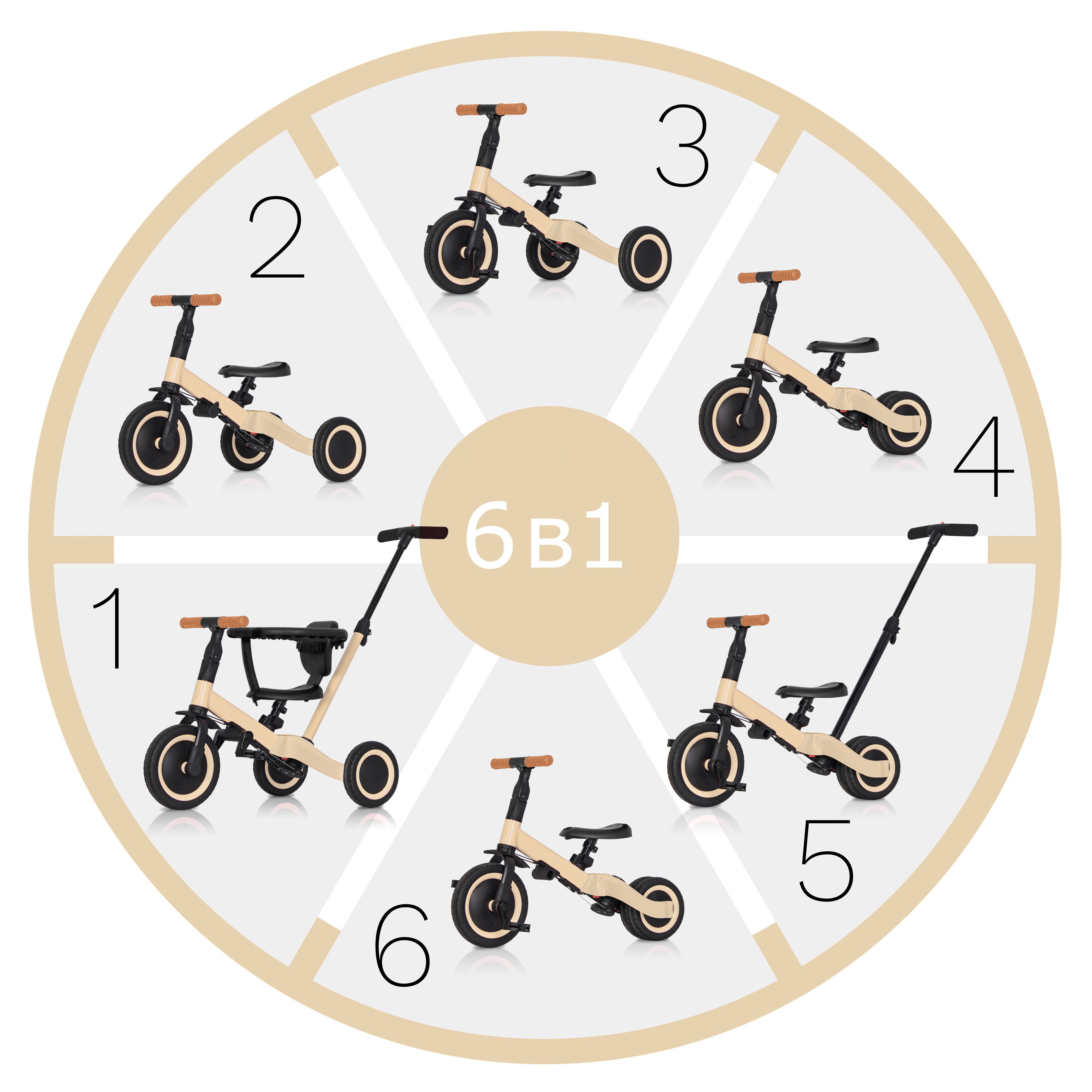 Детский беговел-велосипед 6в1 с родительской ручкой, бежевый - TR008-BEIGE