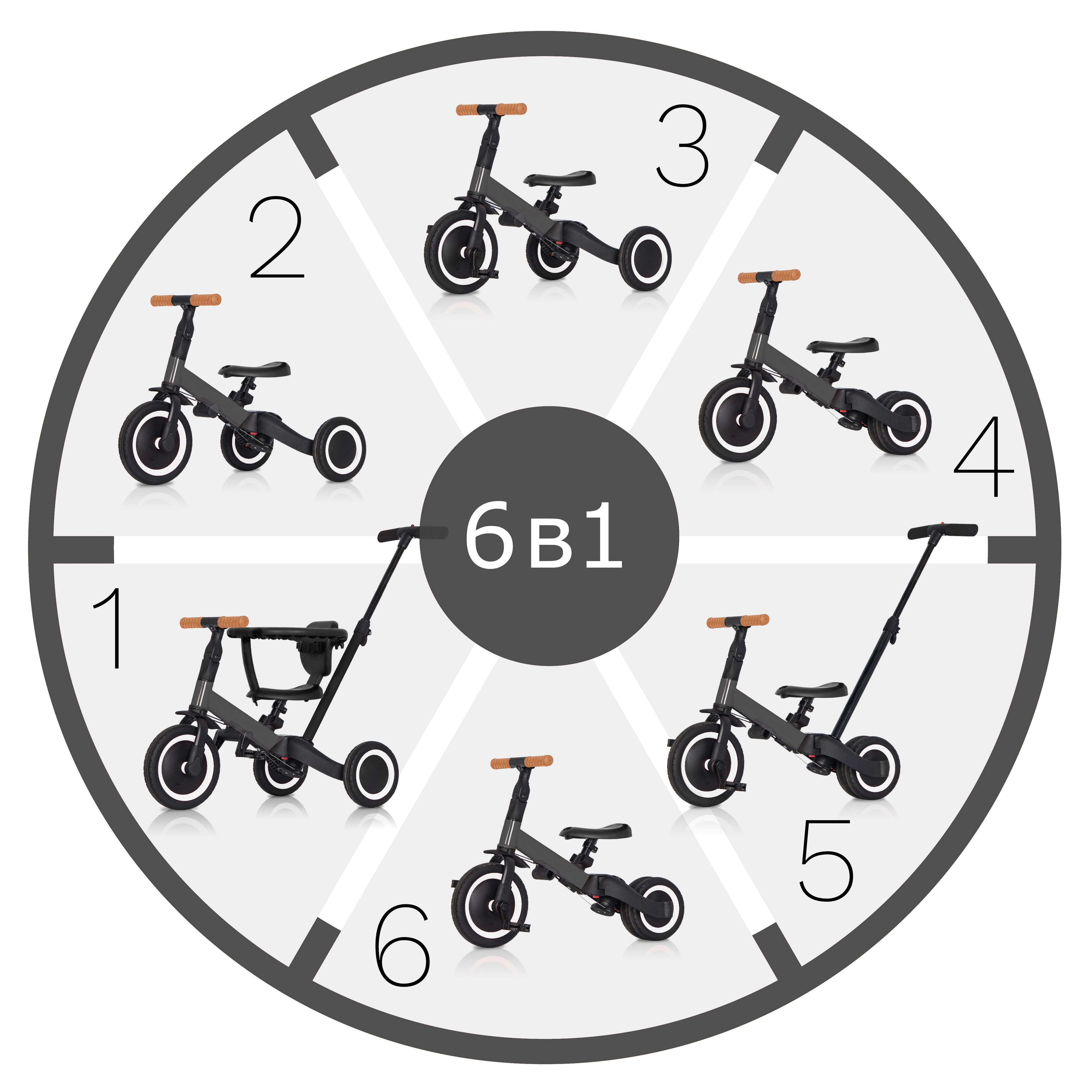 Детский беговел-велосипед 6в1 с родительской ручкой, темно-серый - TR008-DARK-GREY