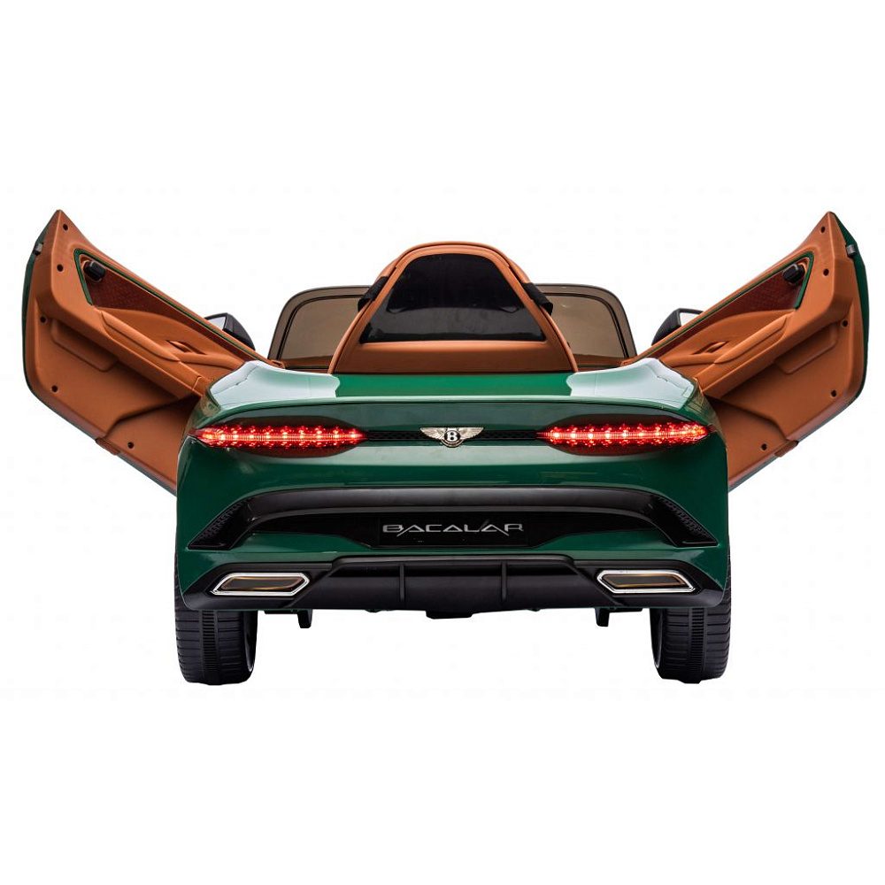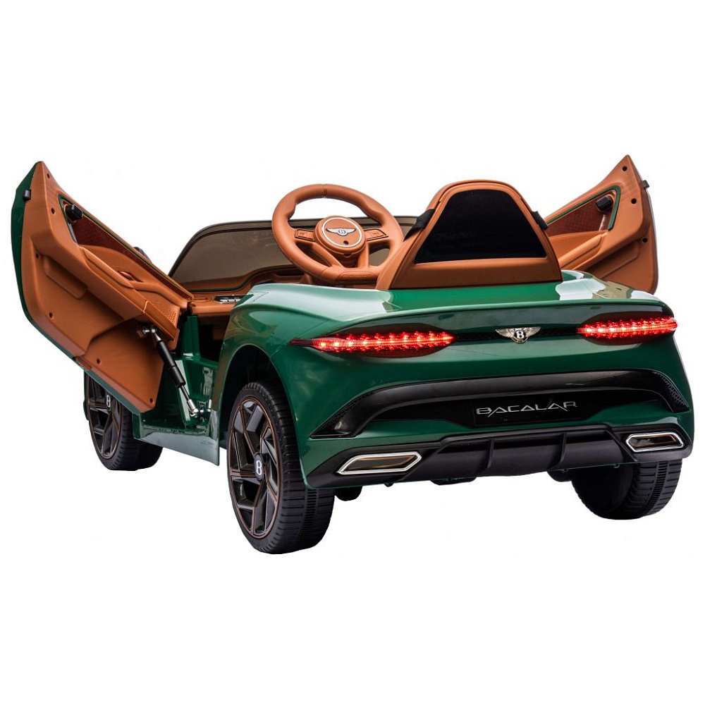 Детский электромобиль Bentley Bacalar (полный привод, 12V) - JE1008-GREEN-PAINT - это качественный, стильный, лицензионный седан выполненный по лицензии легендарной общеизвестной автомобильной марки Bentley. Модель имеет невероятно реалистичный дизайн максимально повторяющий реальный аналог. Bentley Bacalar представлена на нашем сайте в максимальной комплектации. Для комфорта маленького водителя в модели предусмотрено мягкое кожаное кресло, каучуковые колеса комфортные и полный привод модели для использования почти на любой поверхности. Так же для безопасности электромобиль оснащен ремнем безопасности на сиденье и родительским пультом который всегда в приоритете при управлении моделью.