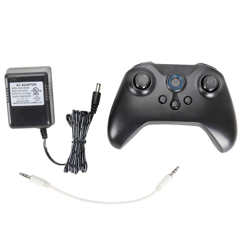 - Взрослым доступна функция контроля электромобиля с индивидуального пульта управления. Он подключается через интерфейс Bluetooth и работает на расстоянии свыше 50 метров. С его помощью можно ехать вперёд/назад, поворачивать, тормозить и устанавливать медленную или быструю скорость.