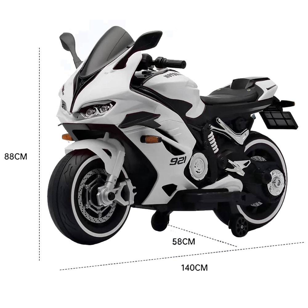 Детский электромотоцикл Ducati (12V, EVA, ручка газа, спидометр) - FT-921-WHITE - это яркий спортивный электробайк, размер которого очень близок к оригиналу, с диодной подсветкой колес, фар, задних стопов и габаритных огней, несомненно, привлечет внимание, как детей, так и взрослых. Запоминающийся внешний вид дополнен отличным функционалом: два мотора по 45 Ватт, резиновые колеса для отличного сцепления с любым дорожным покрытием, каучуковые дополнительные боковые колесики для хорошей устойчивости, эргономичное сиденье из кожзама, амортизатор для комфортного катания, боковые зеркала и задние стопы из мягкого пластика, магнитола для прослушивания любимой музыки.