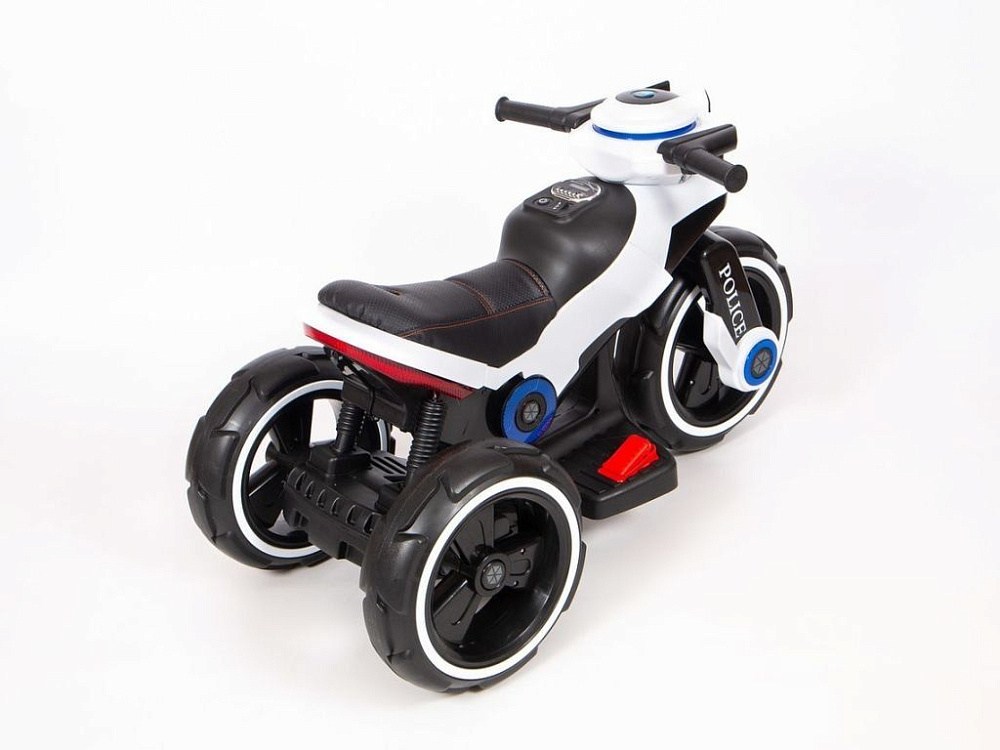 Детский мотоцикл на аккумуляторе Y-MAXI Police White - SW198B-WHITE полностью передаёт атмосферу крутого байка, особенно в сочетании с яркой и стильной подсветкой корпуса. Широкая трёхколёсная база удерживает электромобиль в правильном положении, чтобы он не перевернулся даже при езде по неровной дорожной поверхности. Сиденье оснащено мягким кожаным чехлом, который обеспечивает максимальный комфорт водителя. Резиновые колёса обеспечивают хорошую проходимость по асфальтированным дорогам и твёрдому грунту. Вам этого мало?! На завершение текста мы решили оставить самую интересную функцию - настоящую аудио магнитолу! Она оснащена разъёмами для подключения цифровых носителей с заранее записанными мелодиями, что позволяет слушать музыку не отвлекаясь от катания.
