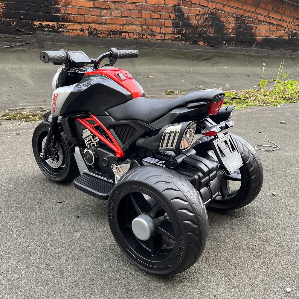 Детский мотоцикл (трицикл) Honda CB1000R черный - QK-1988-BLACK полностью передаёт атмосферу крутого байка, особенно в сочетании с яркой и стильной подсветкой передней фары. Широкая трёхколёсная база удерживает электромобиль в правильном положении, чтобы он не перевернулся даже при езде по неровной дорожной поверхности. Сиденье оснащено мягким кожаным чехлом, который обеспечивает максимальный комфорт водителя. Резиновые колёса обеспечивают хорошую проходимость по асфальтированным дорогам и твёрдому грунту. Вам этого мало?! На завершение текста мы решили оставить самую интересную функцию - настоящую аудио магнитолу! Она оснащена разъёмами для подключения цифровых носителей с заранее записанными мелодиями, что позволяет слушать музыку не отвлекаясь от катания.