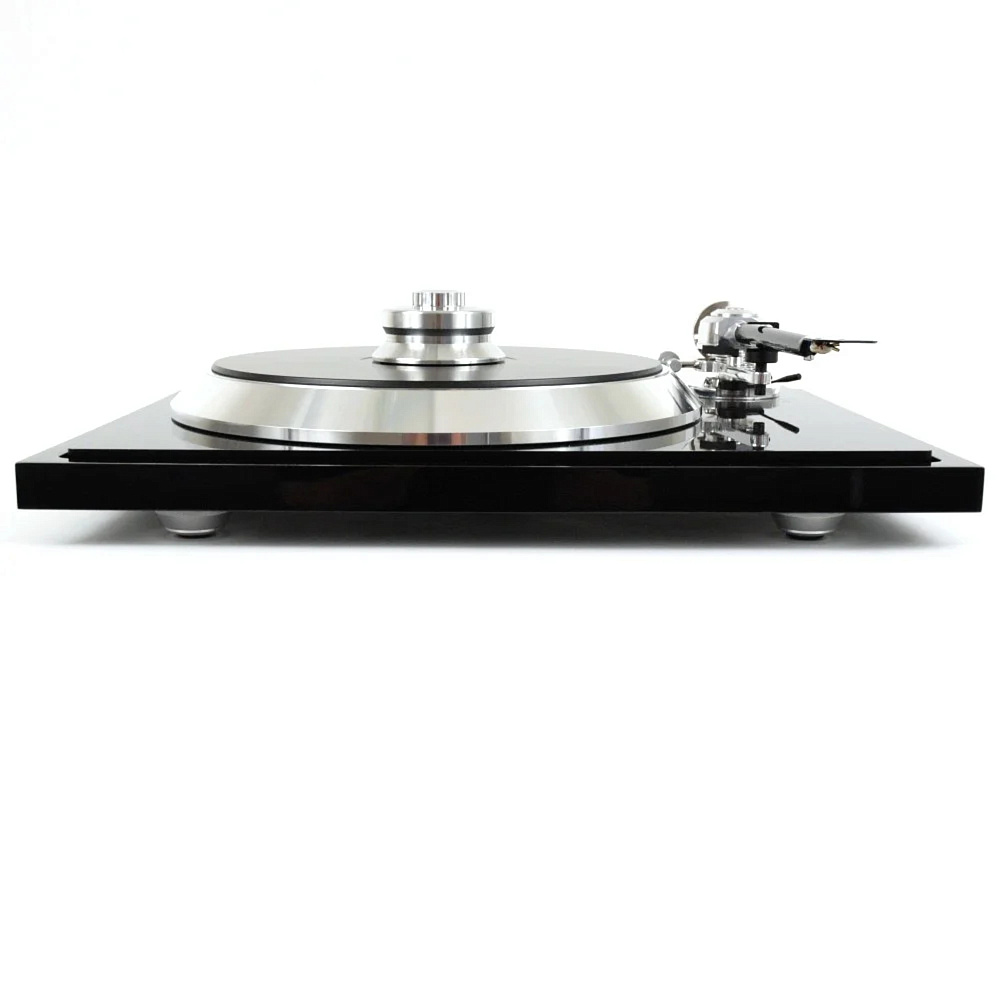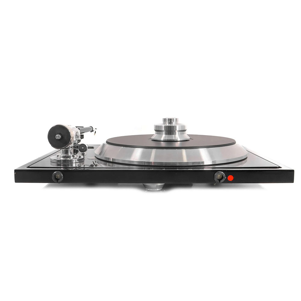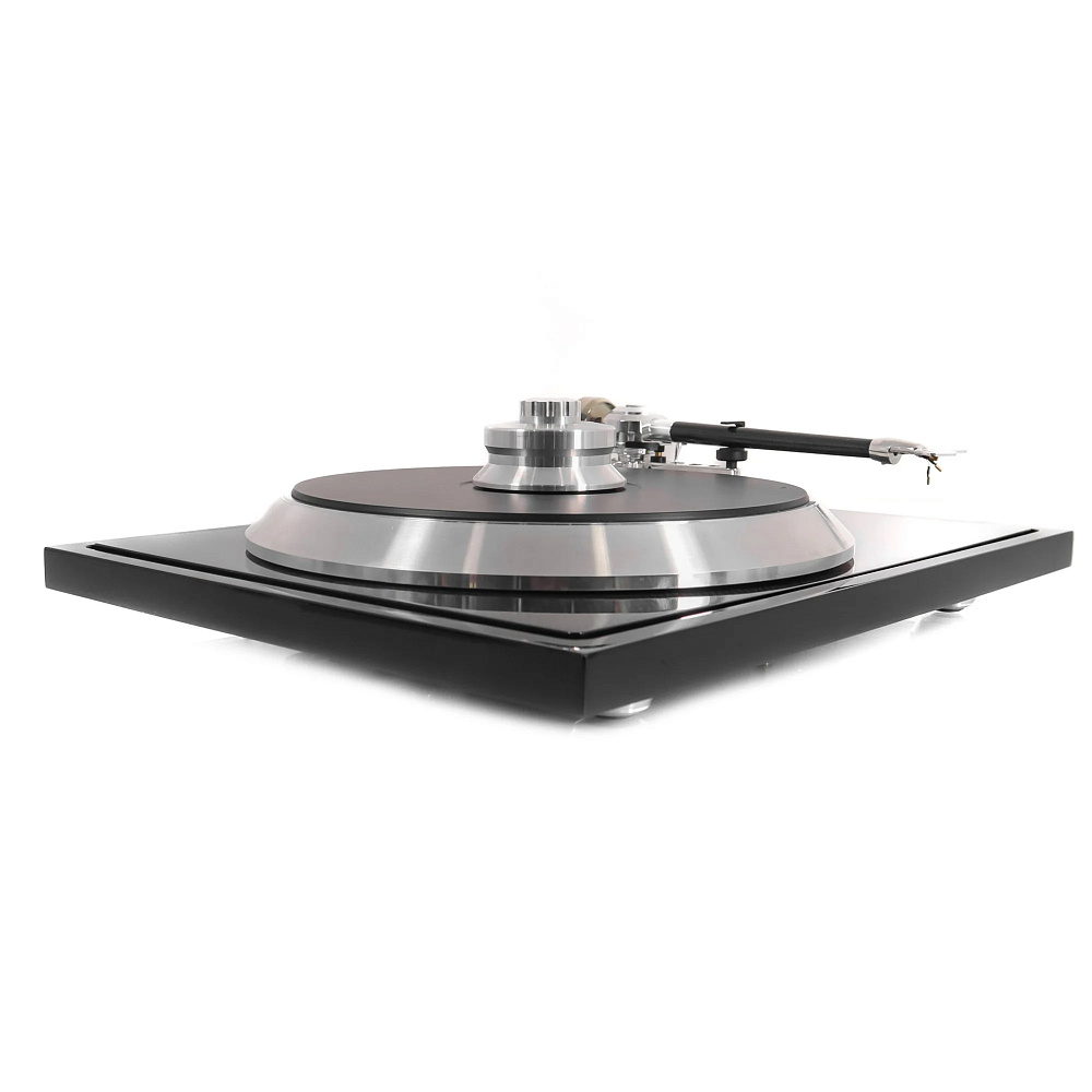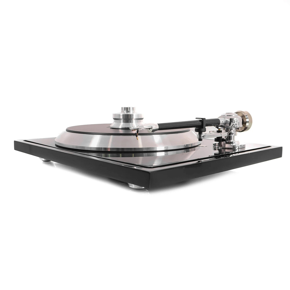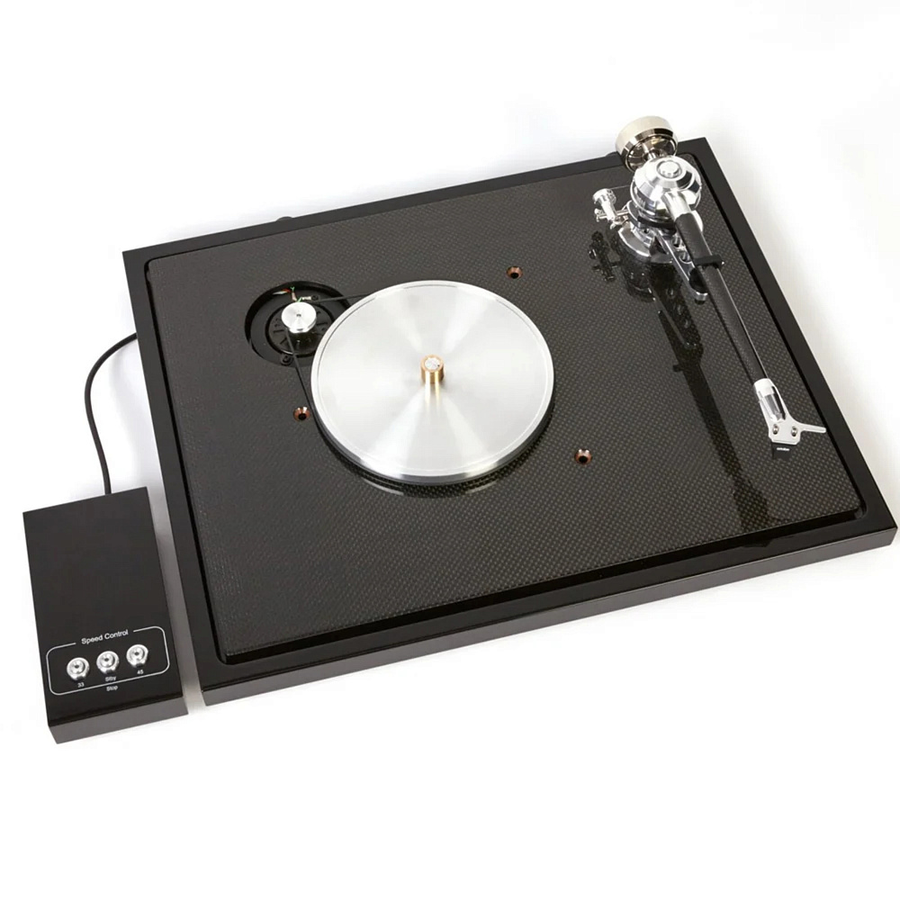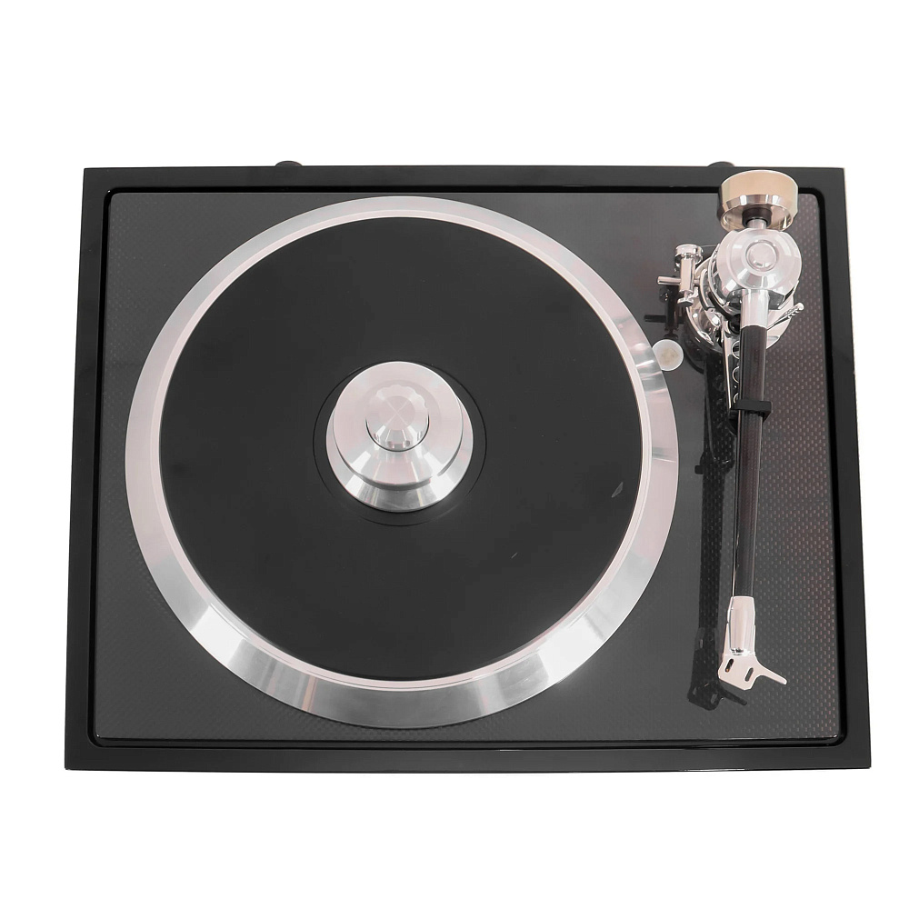Подшипник представляет собой перевернутую конструкцию большого размера с инертным керамическим шариком, не вызывающим резонанса, сверху, вокруг подшипника мы устанавливаем сверхтяжелую точку массой 700 г, которая поглощает всю энергию вокруг. Жесткая углеродная подложка помогает передавать всю вибрацию в этой точке массы. Таким образом, вибрации передаются с помощью тепла. Само блюдо изготовлено из специального сплава очень инертного алюминия, а также демпфируется вставками из TPE - оно состоит из 2 частей, подложки и основной пластины, что позволяет ему оставаться плоским, несмотря на очень высокую массу и кинетическую энергию.