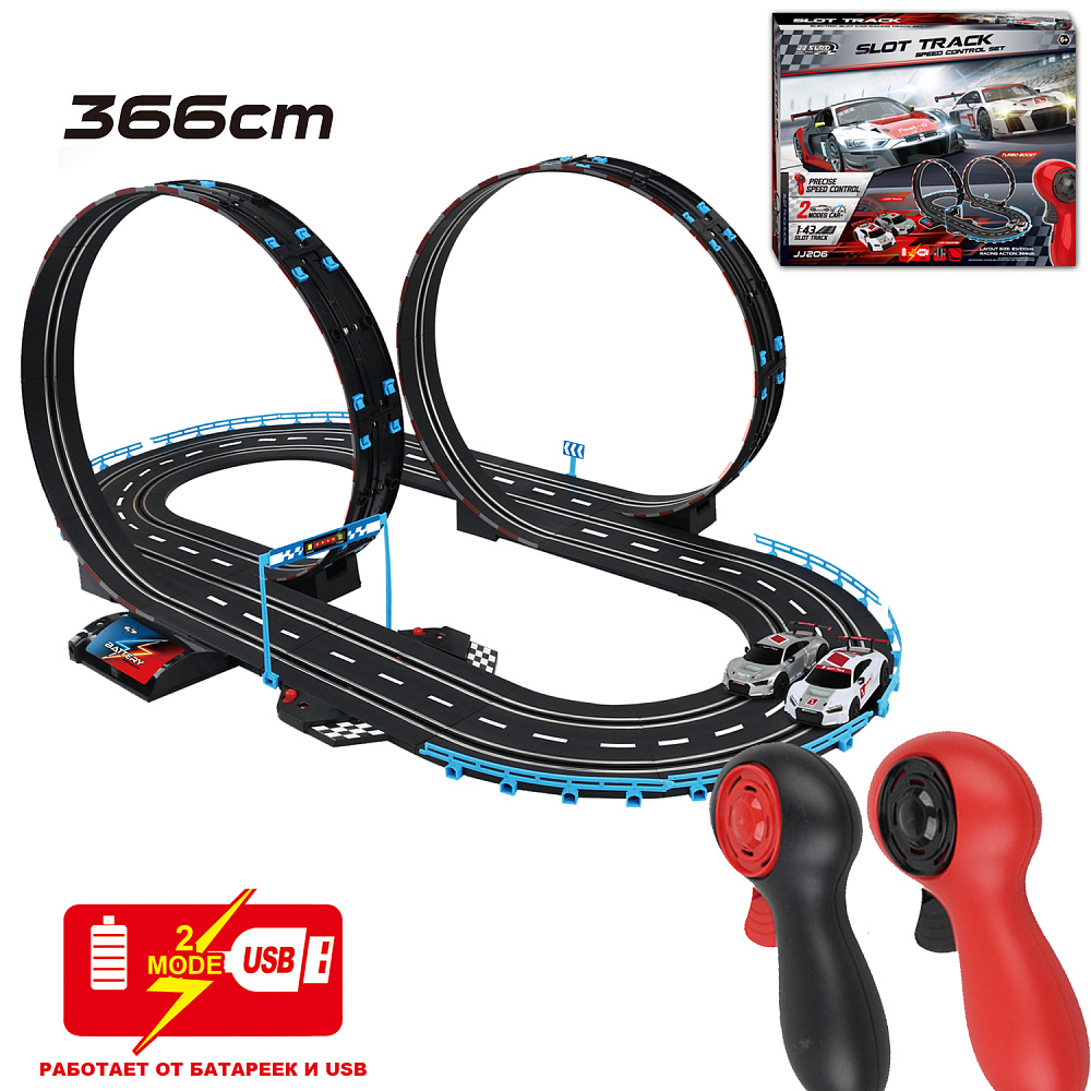 Гоночный автотрек JJ slot (2 машинки, 366 см, от сети, 1:43) - JJ206-1