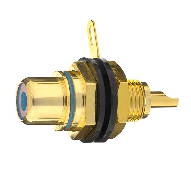 Разъем типа "RCA" для монтажа, 24К золотое покрытие, под пайку, диаметр отверстия 8/9.5 мм, 1шт. Цвет: голубой.