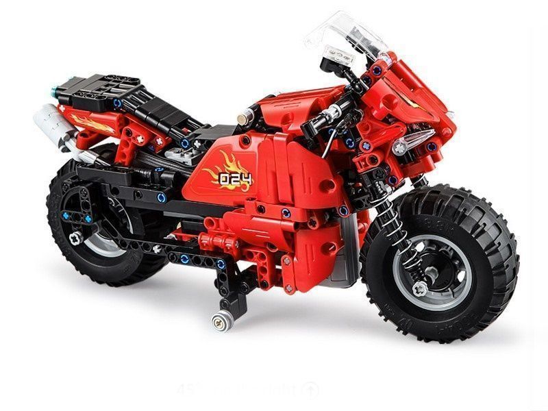 Ребенка захватит процесс сборки мотоцикла с самого начала. А когда получится гоночный мотоцикл, собранный из 484 деталей, не менее захватывающимися будут и игры. Мотоцикл управляется пультом дистанционного управления 2.4Ghz, что делает игру более интересной. Управляемый пультом, мотоцикл движется вперед, назад, влево и право.