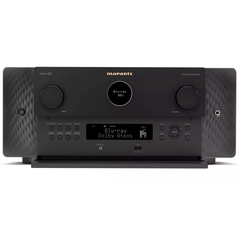 Cinema 40 тщательно настроен Marantz Sound Master для получения потрясающей производительности с запатентованной схемой усиления HDAM для создания самого музыкального звука в вашем доме. Cinema 40 использует монолитную конструкцию усилителя, что означает, что каждый канал усилителя поставляется с собственной платой усилителя вместо одной платы усилителя для всех каналов, что обеспечивает лучшую защиту от перекрестных помех и вибрации. Откидная крышка на лицевой панели обеспечивает доступ к большому 2-строчному жидкокристаллическому дисплею и клавишам курсора, что позволяет пользователям Cinema 40 настраивать ресивер, используя только клавиши на передней панели и большой 2-строчный дисплей.