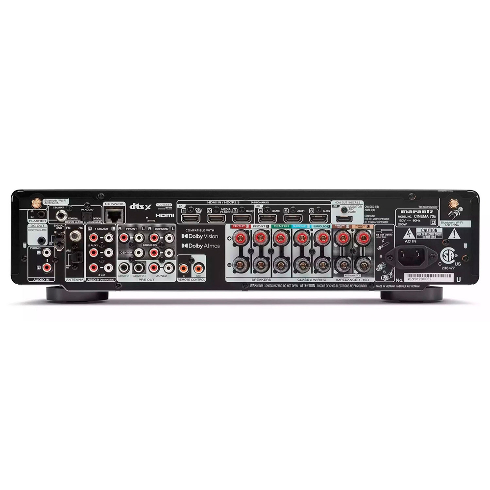 Звуковые мастера Marantz тщательно настроили Marantz Cinema 70s для достижения потрясающей достоверности с использованием тщательно отобранных компонентов для создания самого музыкального звука в вашем доме.