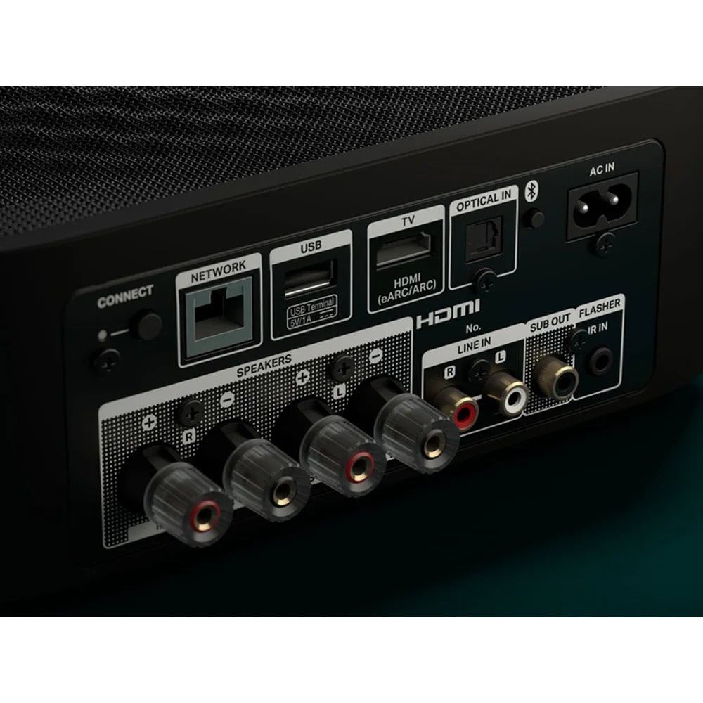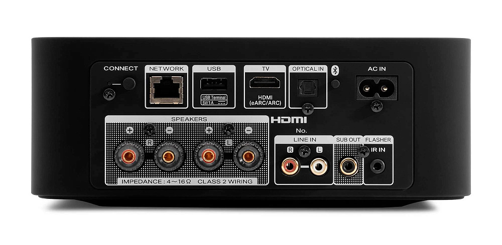 Модель спроектирована и изготовлена в Японии с прицелом на «великолепное звучание широкого спектра потоковых музыкальных сервисов» и, по сути, представляет собой устройство «все-в-одном», к которому достаточно добавить колонки. И нет, сетка на верхней панели не прикрывает динамик, как может показаться изначально.