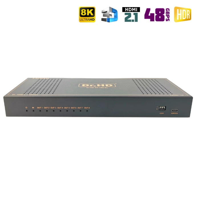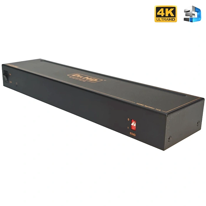 Все что содержит последняя версии HDMI стандарта, реализовано в Dr.HD SP 186 SL. HDMI 2.0b, HDCP 2.2, полоса частот 18Gbps, 4K с частотой до 60Hz, 3D 1080p с частотой до 60Hz, HDR, YCBCR 4:4:4 и поддержка аудио форматов Dolby Digital, DTS 5.1, Dolby Digital+, Dolby TrueHD, DTS-HD Master Audio, Dolby Atmos, DTS:X