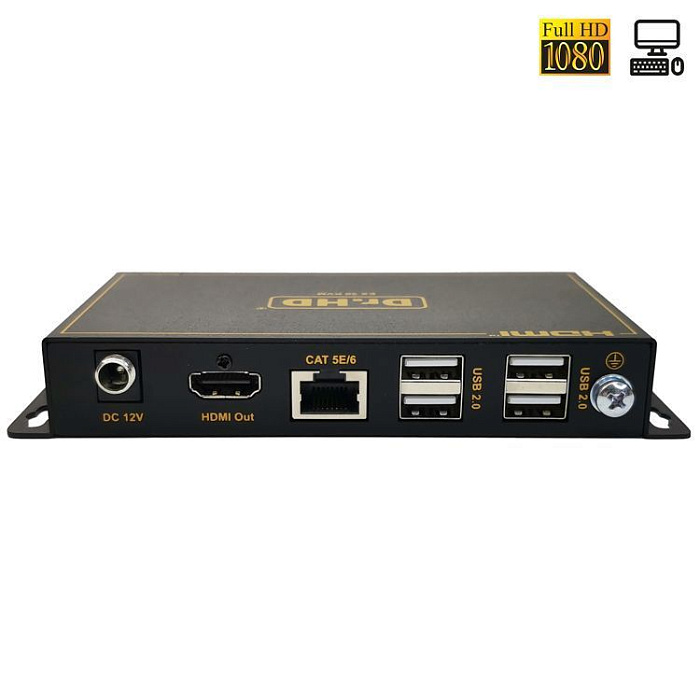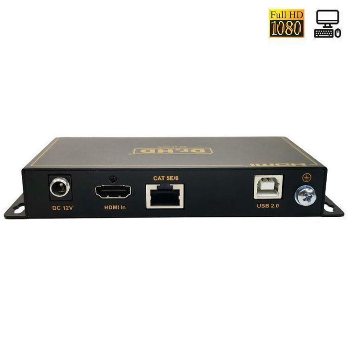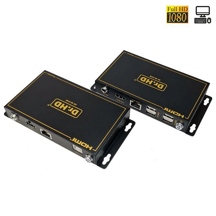 Видео и USB удлинитель по витой паре. Служит для удаленного управления компьютерами, регистраторами и другими устройствами. На входе интерфейсы HDMI и USB, на выходе HDMI и 4 USB. Расстояние передачи видео – до 100 м, расстояние передачи USB – 50 м.