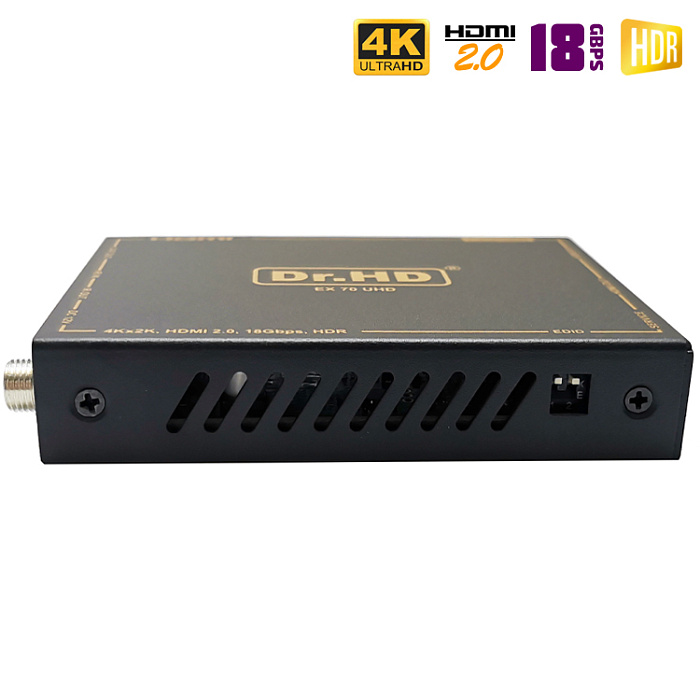 Новинка 2024 года! Все, чего не хватало в модели EX 50 UHD 2.0 реализовано в новой модели – Dr.HD EX 70 UHD. Здесь поддержка HDMI 2.0b и HDCP 2.2, 4Kx2K, динамический диапазон HDR10+, Dolby Vision и HLG, обратный аудио канал (ARC) и многое другое. Пропускная способность 18Gbps, а расстояние передачи – до 70 метров! Запитывается комплект, как и прежде, только с одной стороны.