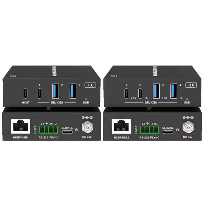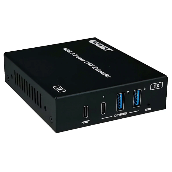 Новинка конца 2025 года! Этот USB-удлинитель передает сигнал USB 3.2 Gen 1 на расстояние до 100 метров по одному кабелю "витая пара" (CAT6 и выше). Передатчик имеет один порт USB-C хоста, один порт USB-C и два порта USB-A устройства. Приемник имеет два порта USB-C и два порта USB-A устройства. При этом, питание на комплект подается только с одной стороны.