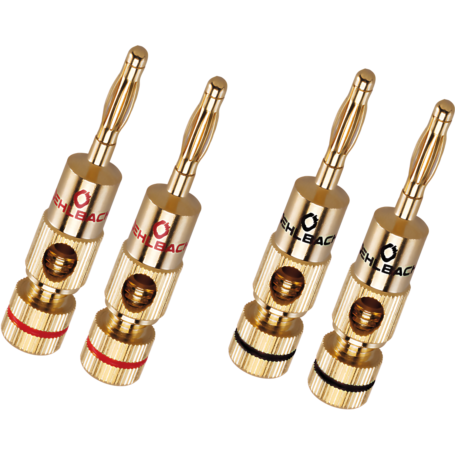 Разъемы обеспечивают оптимальное и удобное подключение кабелей громкоговорителей к динамикам и электронным компонентам, таким как AV-ресиверы и усилители. При этом обеспечивается надежный контакт и превосходное качество передачи. Контакты штекера покрыты 24-каратным золотом, а подвод кабеля может осуществляться сбоку штекера сечением до 10 мм2.
