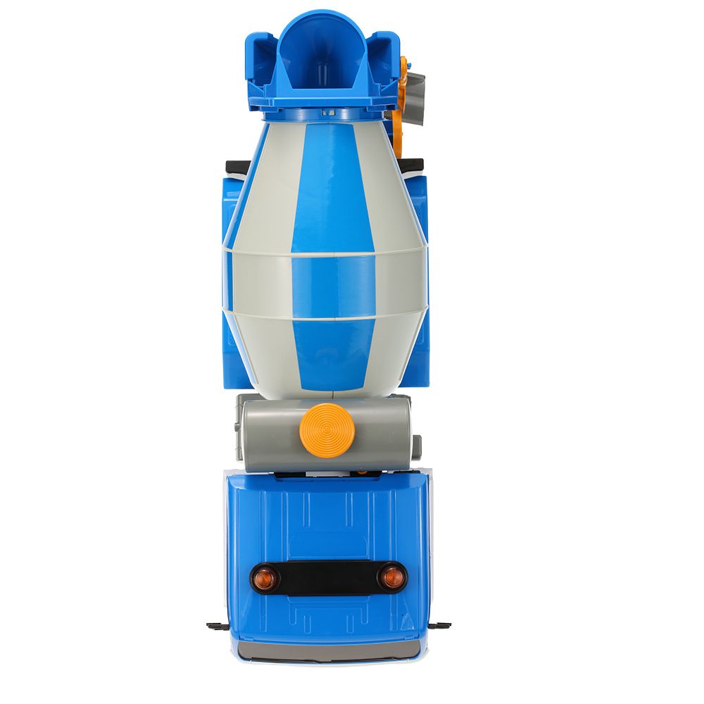 Каждая деталь в игрушке выполняет свои функции. Так как бетономешалка работает в самых сложных условиях, то создатели модели снабдили её 4 ведущими колёсами. На таком автомобиле просто невозможно застрять. Для строительных работ в тёмное время суток на машинке установлены яркие фары. Но самое главное — это бак для бетона. Он крутится влево и вправо. Причём, на пульте есть контроллер направления вращения. А создали установлен подвижный рог для бетона.