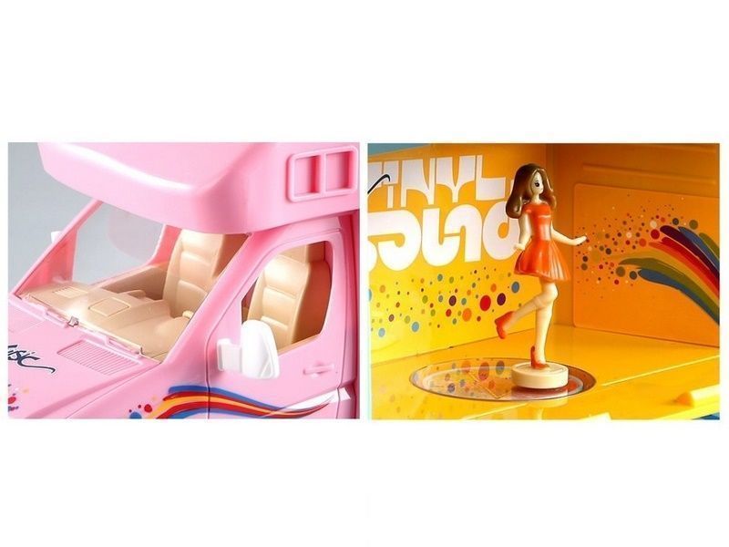 Фургон Сцена на колесах открывается дистанционно и превращается в музыкальную сцену, с танцующей куколкой под три разные мелодии. И это еще не все, машинка Сцена на колесах имеет функцию Bluetooth колонки, с которой можно подключить фургон к любому устройству с поддержкой Bluetooth и наслаждаться любимыми музыкальными композициями. Под потолком сцены в фургоне Double Eagle установлен светящийся "диско-шар", который так же активируется кнопкой на пульте.