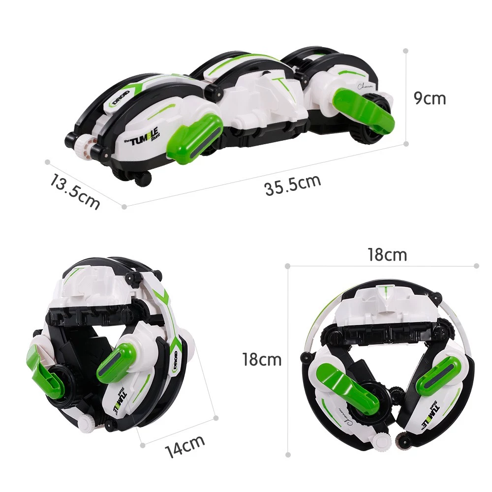 Радиоуправляемая машина-перевертыш CraZon Гусеница - 333-TJ1901B-Green - это необычная машинка-перевертыш в виде гусеницы. Она может выполнять различные функции: движение вперед, назад, повернуть налево, повернуть направо, вращение на 360, функции деформации (складывания / разворота) одной клавишей: от формы гусеницы до формы мяча и обратно с помощью специальной кнопки на пульте управления. С помощью этой функции вы можете легко изменять форму вашей игрушки, чтобы адаптироваться к различным условиям грунта, что будет круто и интересно.