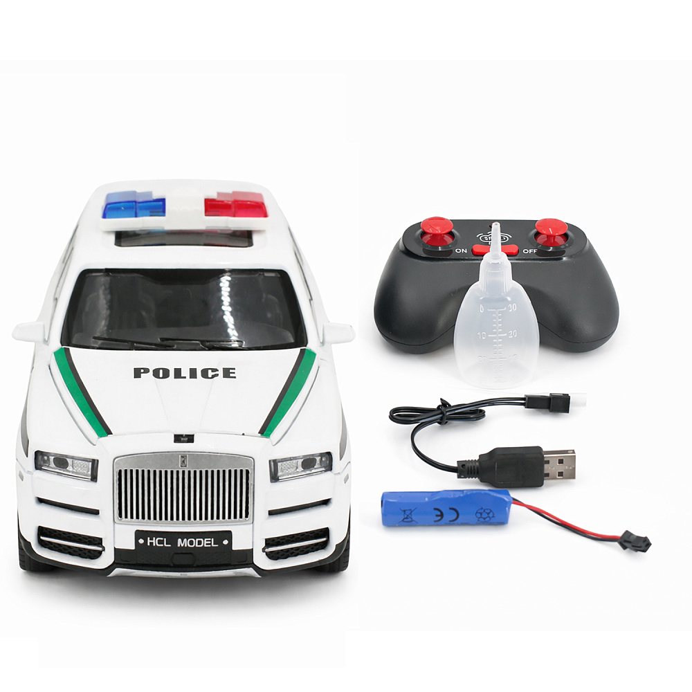 Радиоуправляемая металлическая полицейская машина Rolls-Royce Cullinan 1:22 - HCL-3606-WHITE - это стильная и детализированная модель с кузовом DIE-CAST, светодиодной подсветкой фар и эффектным парогенератором с подсветкой. Открывающиеся двери, капот и багажник делают модель максимально реалистичной. Отличный вариант для игры и подарка.