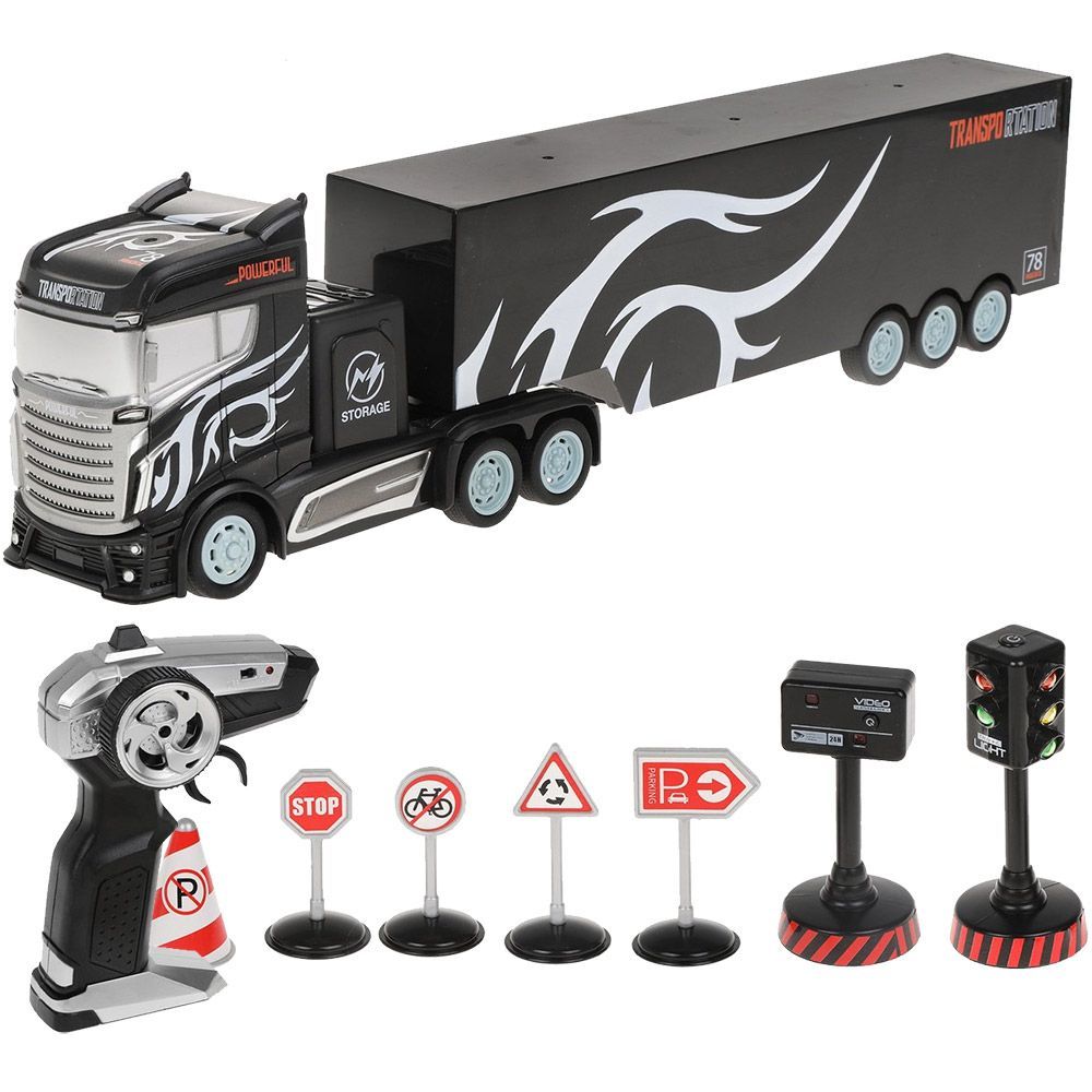 Радиоуправляемый грузовик трейлер и набор дорожных знаков (2WD, акб, 1:16) - GM1926