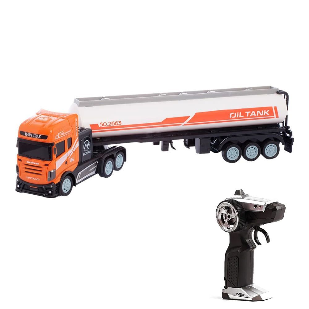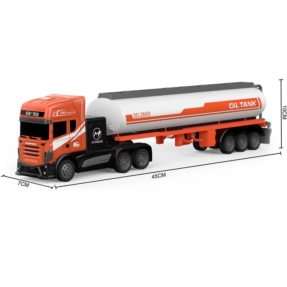 Радиоуправляемый грузовик цистерна (2WD, акб, 1:16) - GM1954 - это грузовой транспорт, специально предназначенный для дальних перевозок. Ведь грузовой тягач можно отправить в другой город или даже заграницу, например, в соседнюю игрушечную страну! Какие приключения ждут эту машинку – об этом знает только ее юный владелец. Ребенок оценит по достоинству высокую детализацию и реалистичность модели. Ведь трейлер отличается от настоящего как бы размером. Тягач имеет классический тип кузова, окрашенный в матовый оранжевый цвет, а сзади расположен большой грузовой прицеп - цистерна для разнообразного товара.