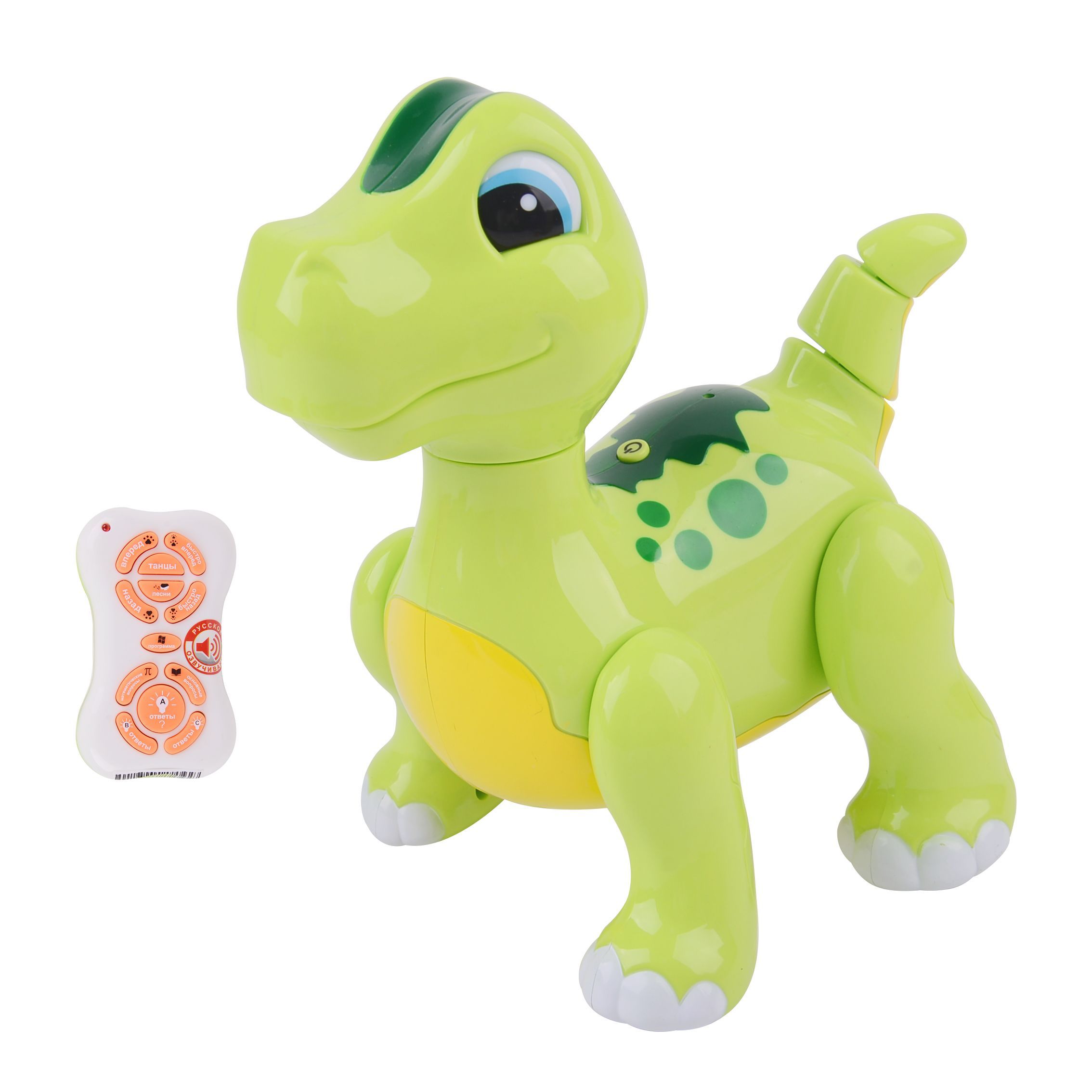 Радиоуправляемый динозаврик - ZYA-A2743-2 - это интерактивный динозаврик на дистанционном управлении - оригинальный подарок с разнообразными функциями для развлечения вашего ребенка. Необычный, но очень милый, питомец умеет двигать головой и вилять хвостиком, ходить вперед и назад, бегать и танцевать. Кроме того, он поет, читает сказки и любит задавать интересные несложные вопросы, способствующие расширению кругозора ребенка. Пульт ДУ имеет простой и понятный для ребенка интерфейс: кнопки выполнены в удобной для детских пальчиков форме, маркированы командами на русском языке. Комплект функционирует от обычных пальчиковых батареек и готов к эксплуатации в любой момент.