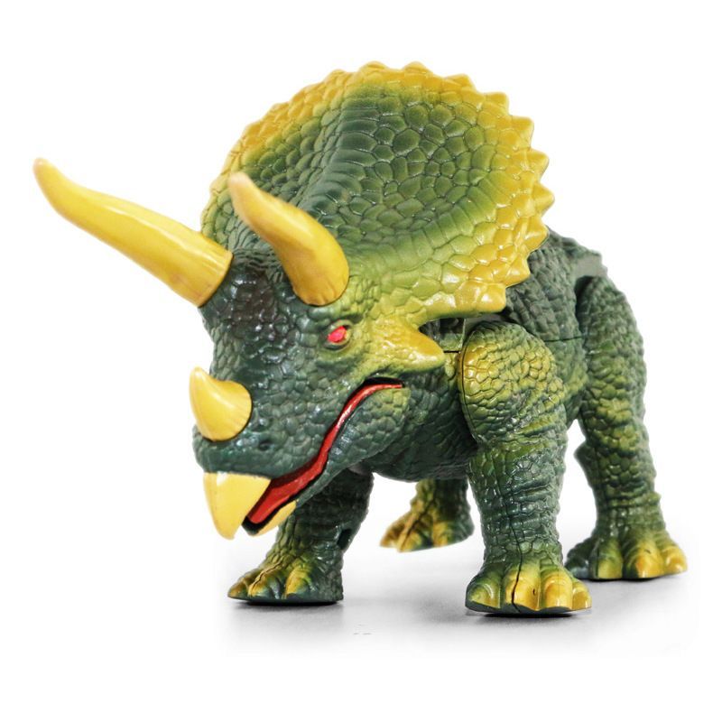 Радиоуправляемый робот ZF динозавр Трицератопс - 9988 - это игрушка робот с инфракрасным пультом управления. Трицератопс - растительноядный динозавр, имеющий телосложение, сходное с носорогом. Этот вид растительноядных динозавров из семейства цератопсид населял нашу планету в конце маастрихтского века мелового периода. Что же умеет делать этот динозавр? Он ходит вперед-назад, издает реалистичные звуки (рычание), у него светятся глаза. А если ты зажмешь 2 кнопки одновременно на пульте в течение 7 секунд, то динозавр сможет передвигаться самостоятельно. Благодаря этой модели ребенок сможет переместиться во времена, когда нашу планету заселяли динозавры. Увлекательные сюжетные игры с этим питомцем обеспечены!