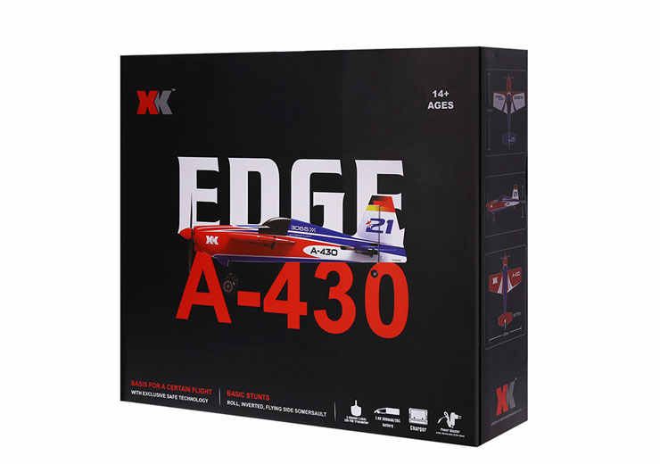 Радиоуправляемый самолет XK-Innovation EDGE A430 RTF 2.4G - A430 - это модель, которая оснащена высокоэффективным бесколлекторным мотором 1406. Корпус самолета выполнен из очень легкого и прочного EPS-материала. Вес летательного аппарата всего 80 грамм!