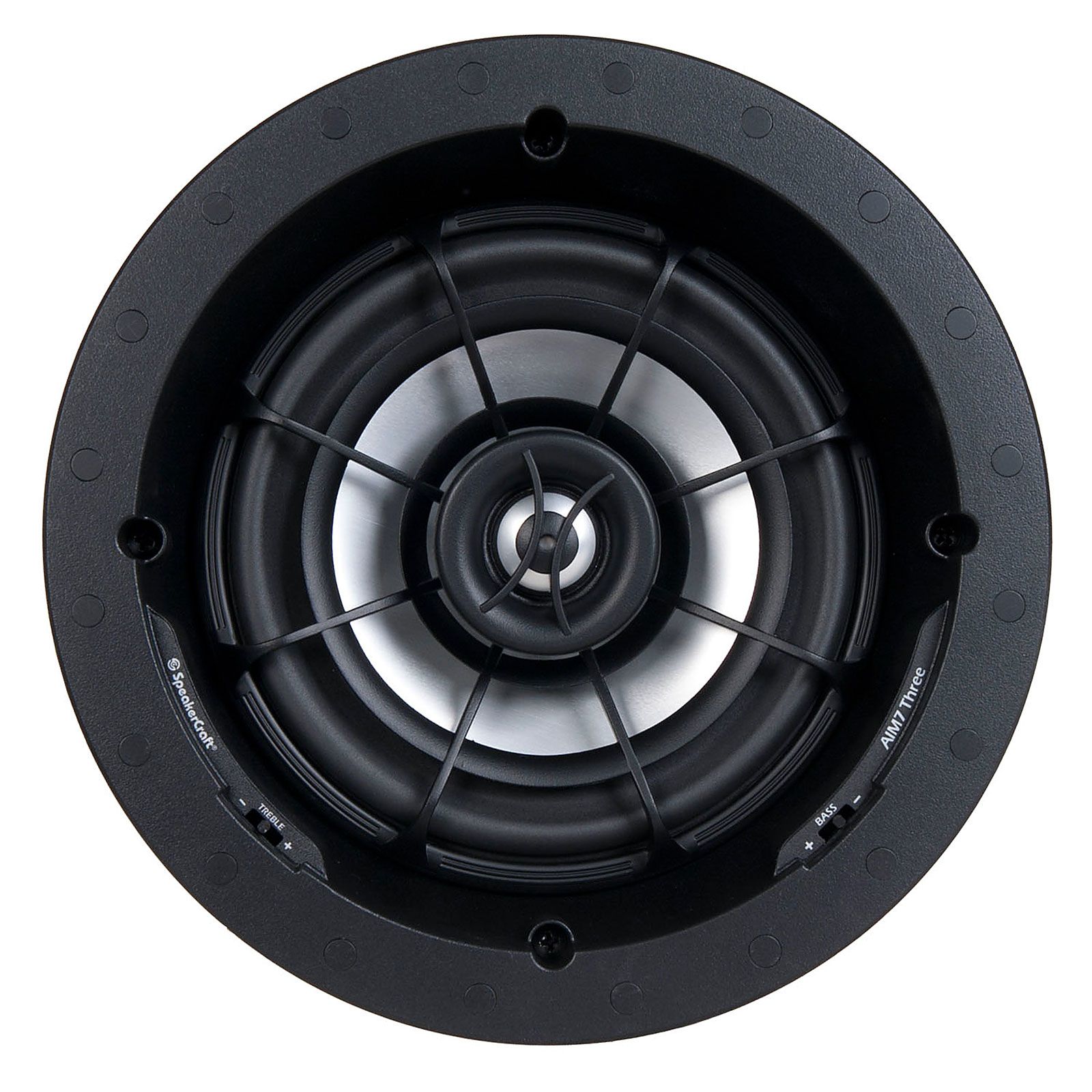 Встраиваемая в потолок двухполосная акустическая система Profile AIM7 Three оснащена бесфланцевой решёткой, позволяющей эффективно замаскировать колонку в окружающем пространстве, а специальная конструкция с поворотными НЧ и ВЧ динамиками даёт возможность создать максимально точную фокусировку звука в необходимой части помещения. Для создания высококачественной звукопередачи акустика имеет 2 драйвера: низкочастотный представлен алюминиевым вуфером, имеющим диаметр 7 дюймов, а высокочастотный состоит из 1 дюймового купольного твитера, изготовленного также из алюминия и специальной перегородки WavePlane, повышающей ширину высокочастотной дисперсии, что вместе позволяет получить до 125 Вт мощности. Колонка поддерживает входное сопротивление 4, 6 или 8 Ом, выбрать которое вы можете при помощи соответствующего переключателя, расположенного на лицевой панели, а произвести необходимую частотную корректировку в зависимости от нелинейности акустики помещения за счёт 2- эквалайзеров, один для НЧ, а второй для ВЧ. В комплект поставки входит белый гриль.