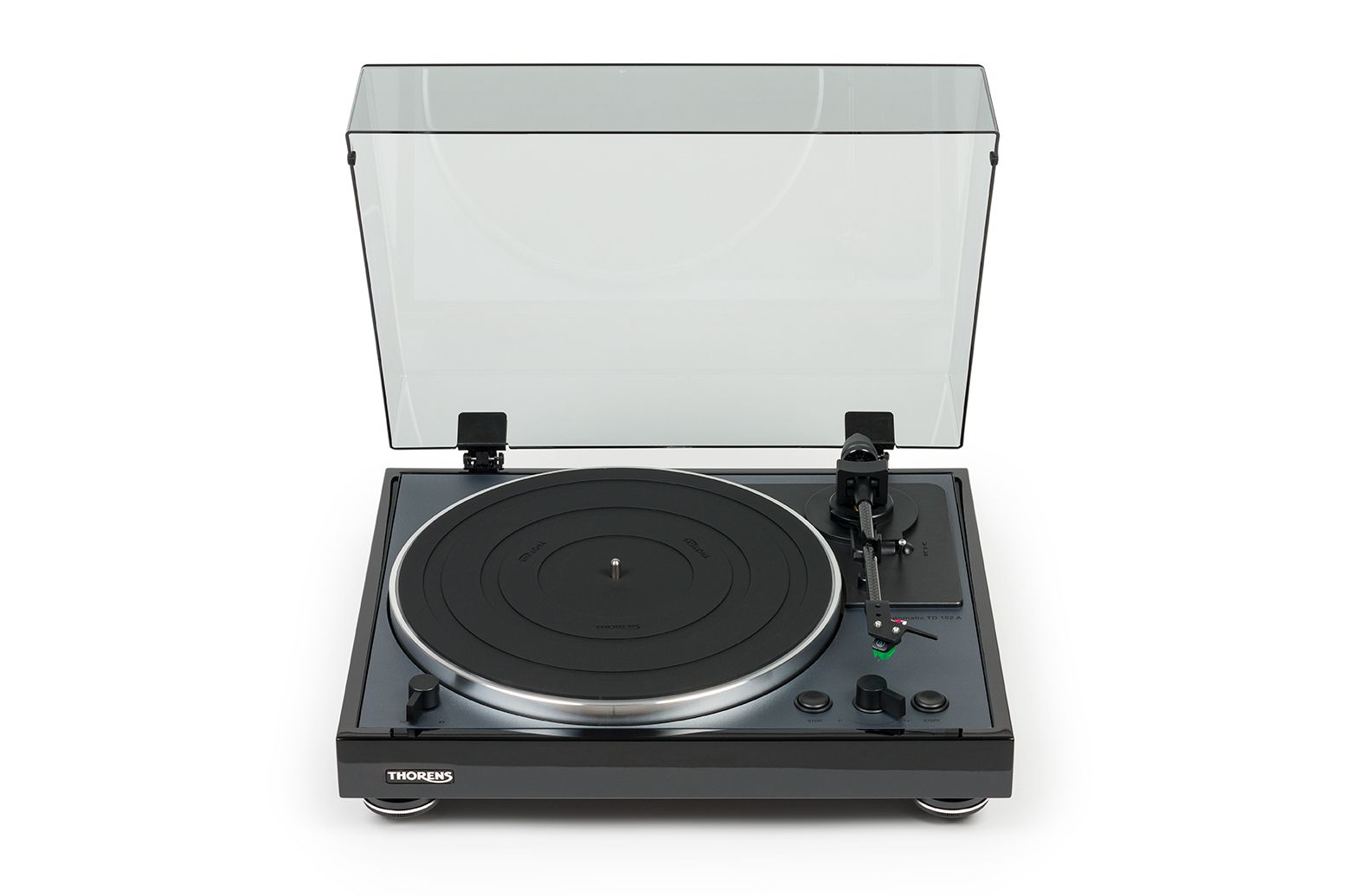 Thorens TD 102 A предлагается в двух вариантах отделки – черной глянцевой и под шпон ореха.