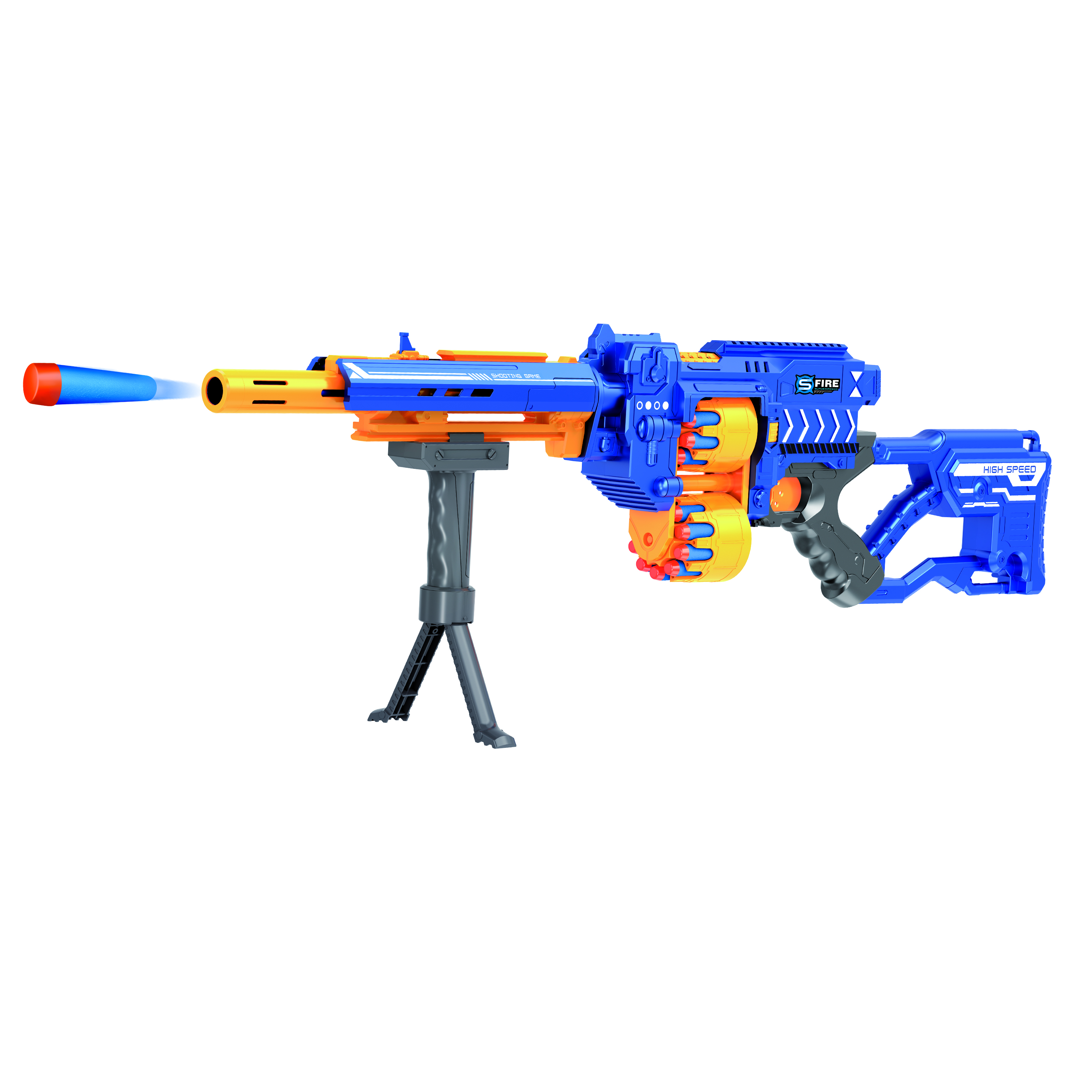 Винтовка синяя на батарейках с мягкими пулями - G3A - это 20-зарядный бластер на батарейках с двумя барабанами.